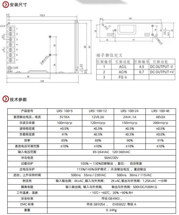 LRS-100W开关电源